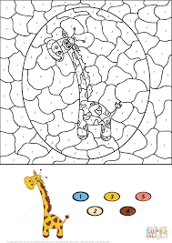 Click on the image to view the pdf. That s true try to color giraffe to some extraordinary. You can now print this beautiful giraffe and tree color by number coloring page or color online for free.